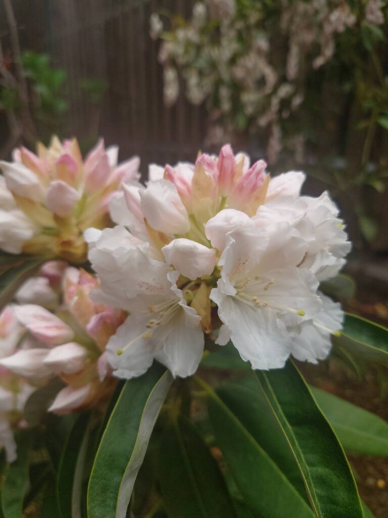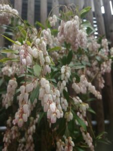 鈴なりに花をつけた馬酔木、ニワザクラに朱木蓮。